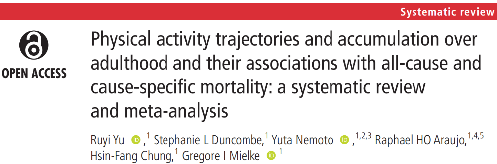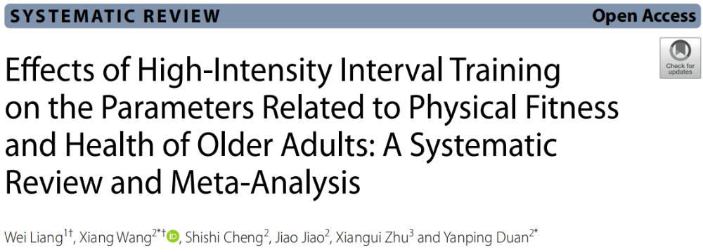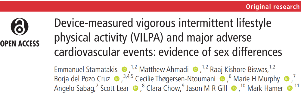 [1]AHMADI MN, HAMER M, GILL JMR, et al. Brief bouts of device-measured intermittent lifestyle physical activity and its association with major adverse cardiovascular events and mortality in people who do not exercise: a prospective cohort study[J]. Lancet Public Health, 2023;8(10):e800-e810. DOI: 10.1016/S2468-2667(23)00183-4.[2]YU R, DUNCOMBE SL, NEMOTO Y,et al. Physical activity trajectories and accumulation over adulthood and their associations with all-cause and cause-specific mortality: a systematic review and meta-analysis[J]. Br J Sports Med, 2025;59(17):1228-1241. DOI: 10.1136/bjsports-2024-109122.[3]STAMATAKIS E, AHMADI M, BISWAS RK, et al. Device-measured vigorous intermittent lifestyle physical activity (VILPA) and major adverse cardiovascular events: evidence of sex differences[J]. Br J Sports Med, 2025;59(5):316-324. DOI: 10.1136/bjsports-2024-108484.[4]LIANG W, WANG X, CHENG S,et al. Effects of high-intensity interval training on the parameters related to physical fitness and health of older adults: a systematic review and Meta-Analysis[J]. Sports Med Open, 2024;10(1):98. DOI: 10.1186/s40798-024-00767-9.